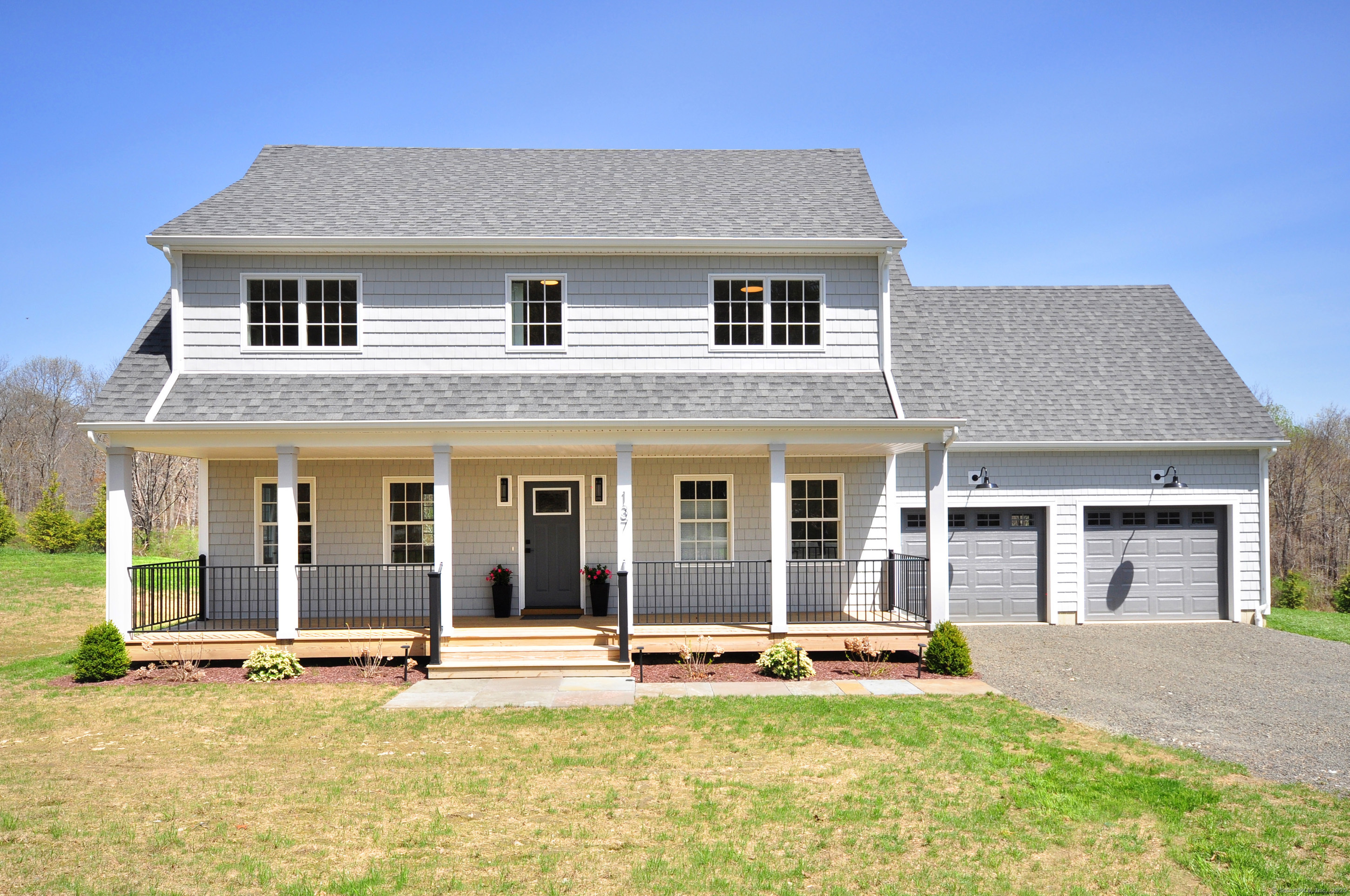 Location, location, location! Energy efficient, NEW CONSTRUCTION by local builder set on 1.19 tidy acres Down a country road, this modern cape is move in ready. Large open floor plan, perfect for entertaining, includes oversized Kitchen Island, beautiful red oak floors, central air and thoughtful upgrades. Kitchen appointed with LG appliances, Kraus sinks, quartz counter tops, soft close cabinets and walk in pantry. Gorgeous storage island includes Kraus prep sink with butcher block cover and lots of room for small appliance storage. 3 bedrooms, 2.5 bathrooms with laundry conveniently tucked among the bedrooms with additional office or flex space. Primary bedroom with en suite bath and two walk in closets. Large second bedroom with 2 closets. Tidy bright third bedroom with hardwood floors. Centrally located hallway closet conveniently wired for internet. Bright spacious garage with WiFi connected openers. Additional energy efficient appointments include Anderson 400 Series casement windows, High efficiency Heil heating and cooling, spray foam insulation and 200 amp electrical service. 1250 gallon septic tank and high efficiency constant pressure well pump. Enjoy nature in either of two beautiful outdoor spaces, the expansive covered front porch with western view or the large blue stone patio looking over the sloping back yard. Why renovate, when you can move right in? Includes 1 year home warranty.